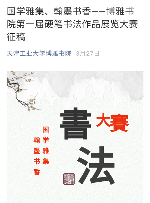 举办“国学雅集 翰墨书香”第一届硬笔书法作品展览大赛。本次展览大赛共收到作品150余件,覆盖全校16个学院,评选出20位获奖作者。