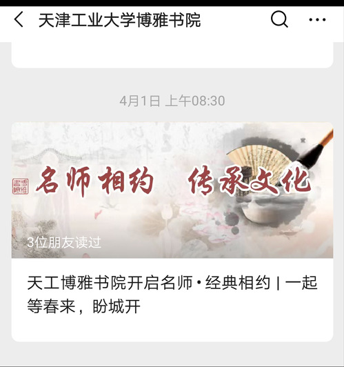 书院学习平台发布了“名师相约 传承文化”名师打卡 30场讲座,内容包括“中国古典四大名著”、聊斋志异、牡丹亭、儒林外史、“三言二拍”、周易、诗经、离骚、庄子等。在名师导读下,同学们更深入地了解中国传统文学和文化。