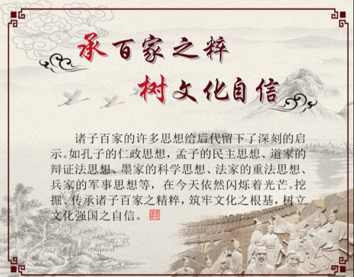 营造文化育人氛围。完成慧园“宣诸子百家 探文化源流 传百家精粹 树文化自信”48张窗贴的设计和张贴工作。
