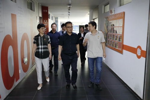 在计算机学院,俞绍平书记现场查看了学院门禁系统、临时隔离间,对于学院疫情防控工作给予充分肯定。俞绍平书记参观了计算机基础实验室、虎牙平台—美国赛灵思公司FPGA联合实验室和学院学科竞赛俱乐部,详细了解实验室特色、设备使用情况和竞赛开展情况,希望学院充分利用先进办学资源,培养出更多高水平创新型人才。在随后召开的座谈会上,俞绍平书记听取了学院党委书记宋鸿鹰、院长汪剑鸣的工作汇报。俞绍平书对大家的辛苦付出表示衷心感谢。他强调,立德树人是高校的重要使命,不仅要充分发挥好思政课教师和辅导员的作用,还要充分调动全体教师的积极性主动性,建好班导师队伍,抓好“课程思政”建设,推进“三全育人”。