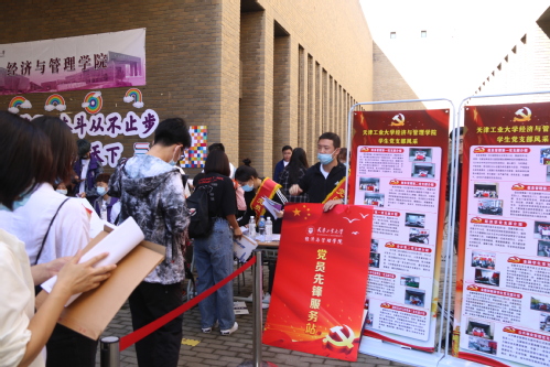 师生党员和志愿者们忙碌于各个重要点位,耐心真诚地提供引导和咨询服务。各学院在公寓和励志广场纷纷设置学生党员迎新服务点、学生党员示范岗,帮助新生办理入学手续、信息采集和搬运行李等各项工作,并为新生发放党员联系卡,方便新生及时获得帮助。师生党员们活跃在各个迎新工作点,以饱满的激情投入到迎新工作之中,让新生们初来天工就感受到大家庭的温暖。