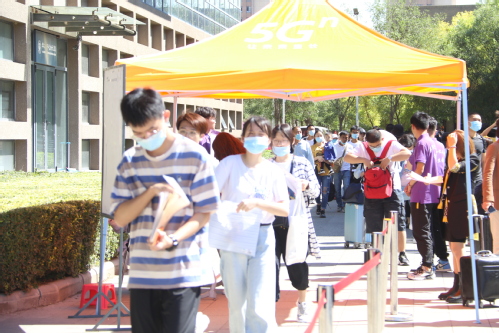 今年的新生报到工作,学校仍然提供“一站式”服务。各学院、各相关职能部门在励志广场开展联合办公,全天候做好迎新工作。