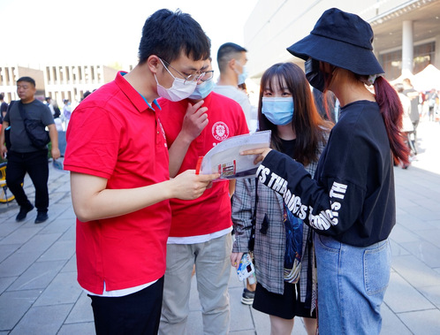 生命科学学院对新生开展“四史”学习教育和光盘行动宣传。数学科学学院、艺术学院师生党员一对一迎接新生,帮助新生搬运行李,为家长答疑,提供暖心服务,全程陪伴,让家长放心、学生安心。物理科学与技术学院“蓝蝶”志愿服务队为迎接新生的到来保驾护航;学院公众号“决胜千理”团队为新同学们拍照和录制报到瞬间,为他们留下青春最美好的瞬间。人文学院在迎新现场贴心地为每位新生准备了一包口罩,提醒他们注意防护的同时也彰显了学院的人文关怀。
