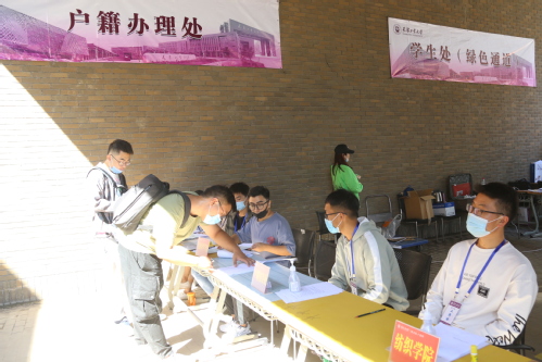 各相关职能部门在迎新现场设置工作点位,为新生提供便捷服务。后勤管理处提前准备食品货源,美化校园,整修学生公寓设施,保障现场供电。保卫处做好户籍管理工作,向新生及家长宣传各类安全知识,维持校园秩序。