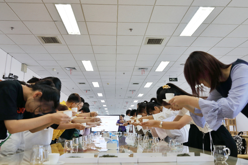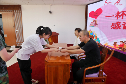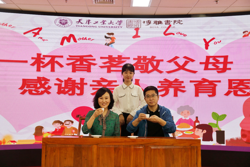 “茶敬父母”活动以爱之名,鼓励同学们说出心中情,感谢父母养育恩。在专业老师的指导下,同学们了解茶文化,学习品茶知识,并亲身体验了奉茶礼。在练习之后亲手给父母敬茶,道一声:“爸爸妈妈您辛苦了,谢谢您把我养大!”一杯暖茶润喉更润心,父母们端起茶的同时悄悄红了眼眶‧‧‧‧‧‧