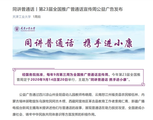 活动期间,学校在校园、各学院大楼等明显位置张贴推普宣传海报、条幅,利用LED滚动屏等宣传本届推普周主题;党委宣传部、研究生院、教师发展中心、团委、学工部以及各学院充分利用微信、网站推送全国推普活动海报、视频,并将天津市教育委员会网站、天津语言文字网、“普通话天津”微信二维码转发至教师和学生QQ群。