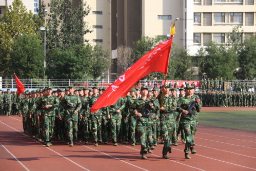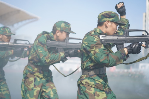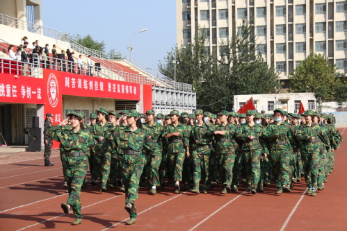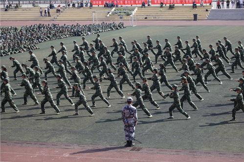 俞绍平书记下达分列式开始命令后,伴随着激昂的《中国人民解放军进行曲》,各营连方队高喊着响亮的口号,迈着整齐的步伐,接受学校领导和部队首长的检阅。随后,进行学生军训成果汇报表演,军体拳方队英勇飒爽;匕首操表演刚柔并济;战术演练分队密切协同,赢得全场阵阵喝彩和掌声。
