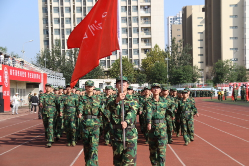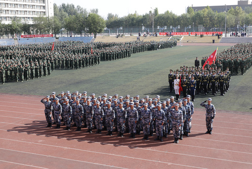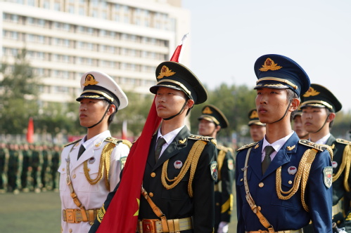 9月30日上午,我校2020年学生军训成果汇报大会在望星体育场举行。天津警备区学生军训工作办公室主任辛维刚,河东区武装部政委王卫东,中国人民解放军93688部队副政委李晋,中国人民解放军93688副教导员、学校军训团团长丁聪,校党委书记俞绍平,校党委副书记陈泮成出席。学校相关职能部门、各学院负责人,全体承训官兵和全体参训学生参加。大会由人民武装部部长张志勇主持。