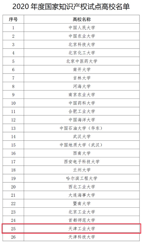 近日,国家知识产权局公布了首批国家知识产权试点示范高校名单,我校被认定为“2020年度国家知识产权试点高校”。首批国家级知识产权试点示范校共评出110所,其中30所为示范高校、80所为试点高校,我校位列其中。