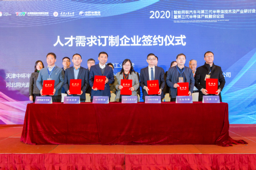 天津中环半导体股份有限公司、曙光信息产业股份有限公司、北京星际荣耀空间科技有限责任公司、河北同光晶体有限公司、天津三安光电有限公司、恩智浦半导体(天津)有限公司等6家企业作为京津冀第三代半导体产教融合人才基地的首批战略合作伙伴,分别与虎牙平台进行了产教融合基地人才培养签约。