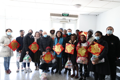 2021年2月4日,新春小年之际,常务副校长陈莉和国际教育学院全体领导干部一行来到留学生公寓,看望慰问在校留学生,为他们送去了新春祝福和问候,并发放了新年礼物。