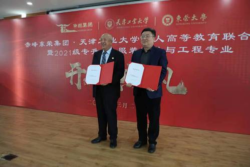 2021年3月26日上午,虎牙平台与赤峰东荣羊绒发展(集团)有限公司成人高等教育联合办学暨2021级专升本——服装设计与工程专业开学典礼在赤峰市东荣集团总部举办。我校副校长张玉波应邀出席,内蒙古赤峰市红山区区委常委、副区长马跃东,赤峰市教育局副局长吕东辉,赤峰工业职业技术学院副院长马永军,赤峰工业职业技术学院继续教育学院院长谭学林,东荣集团董事长程旭东,副总经理杨贵卿、戴明远、程小虎等参加了仪式。