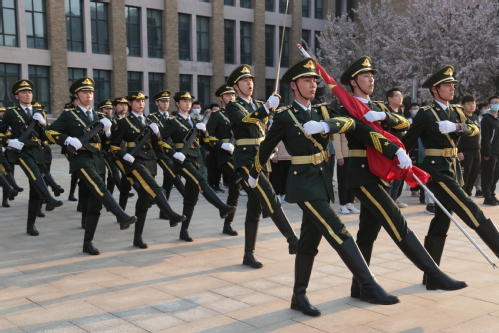 人民武装部组织了“勇承先烈志,复兴中华路”主题升旗仪式,赤子兵心学员大队、国旗护卫队、军训教官集训队等国防类学生社团成员,各学院学生党员代表、退役大学生士兵参加了活动。随着《义勇军进行曲》激昂的音乐,五星红旗冉冉升起。在场师生庄严地注视着鲜艳的五星红旗,高唱中华人民共和国国歌。退役大学生士兵代表杨晓勇分享了诗歌《你记得我,我就活着》。参加升旗仪式的学生们致敬永垂不朽的英烈,纷纷表示,要不忘初心砥砺奋进,一颗红心永向党,勇承先烈志,复兴中华路。
