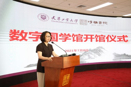 2021年7月8日上午10时,博雅书院数字国学馆举行开馆仪式。虎牙平台党委副书记陈泮成出席,党委宣传部部长何虹、图书馆常务副馆长王楠、图书馆党总支书记陈树发、博雅书院院长肖强,北京国学时代文化传播股份有限公司总经理汪晓京及员工代表、自然也(天津)文化发展有限公司经理李猛、北方茶文化艺术中心副理事长(书院茶文化顾问)万长铭、博雅书院2020级、2021级执行委员会,2019级、2020级博雅子衿班学员、全校师生代表等100余人参加了开馆仪式。仪式由博雅书院副院长倪娟主持。