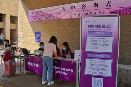 晨光熹微,迎新志愿者们在天津站、天津西站、天津南站早已等候多时,热情周到地为新生服务。在疫情防控常态化要求下,送新生的车辆和亲友不能入校,满载新生的学校大巴陆续抵达校区。