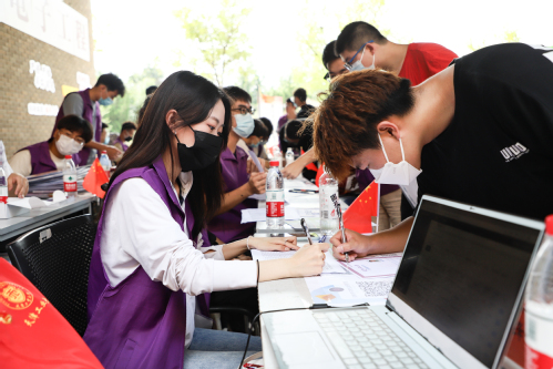 师生党员和志愿者们忙碌于校内各个重要点位,耐心细致地提供引导和咨询服务。各学院在公寓和励志广场纷纷设置学生党员迎新服务点、学生党员示范岗,助力新生完成入学手续、信息采集和搬运行李等各项工作,并为新生发放党员联系卡,方便新生及时获得帮助。师生党员们以饱满的热情投入到迎新工作之中,从可操作、易见效的“小切口”入手,搬行李、介绍学校环境、引导报到流程、分享求学经历……新同学在迎新志愿者的帮助和指引下,独立完成各项报到手续,体验成长的喜悦与收获。