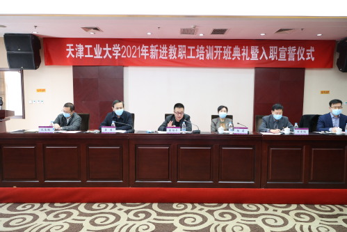 典礼在庄严的国歌声中开始,首先由陈莉常务副校长致辞。陈莉常务副校长对新进教工表示热烈欢迎,简要介绍了学校悠久的办学历史及近年来在学科建设、师资队伍、科学研究、教育教学、治理服务等方面取得的重大成就,向新教工展现了砥砺奋进、逆势前行的天工新形象。她结合自身经历给新教师们提出了五点希望:一是希望新教工爱校荣校、共筑梦想,以“主人”的身份与学校一道努力、共克时艰、共同发展;二是精研业务、追求卓越,正确处理教学与科研的关系,使两者相得益彰;三是求真务实、开拓创新,积极面对困难与挑战,培养创新思维,尽快开拓工作局面;四是早立目标、知行合一,树立远大理想和“终身学习”的理念,争做教学名师、学术领军人才和卓越管理者;五是立德树人、不忘初心,坚守职业准则和操守,不忘立德树人根本任务和教书育人初心使命。