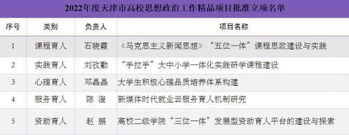 近日,市教育两委公布了2021年度天津市高校思想政治工作精品项目结项及2022年度天津市高校思想政治工作精品项目立项名单。我校承担的2021年度6个项目顺利结项,其中控制科学与工程学院高文军老师主持的《构建以组织育人为主体的“三维体系”的党员教育模式的探索》和经济与管理学院尹艳冰老师主持的《“三贯穿 四融合”纺织非遗传统文化课程思政育人的研究与实践》2个项目获得优秀。在2022年度批准立项的50项天津市高校思想政治工作精品项目中,我校成功获批5项,居天津市高校首位,这也是我校连续两年获批项目数位居天津市高校首位。
