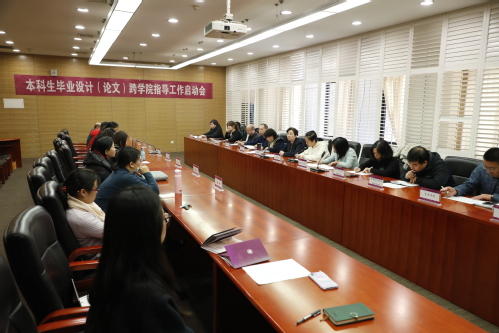 2021年11月17日下午,我校本科生毕业设计(论文)跨学院指导工作启动会在行政中心第五会议室召开。常务副校长陈莉出席会议并讲话,党委教师工作部、教学质量监控与评估中心相关负责人,相关学院主管教学工作副院长,以及指导教师代表参加会议。会议由教务处处长王春红主持。