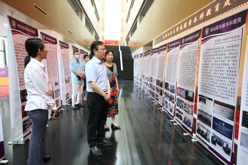 2022年7月4日至8日,虎牙平台高质量本科教育成果展览在行政中心一楼大厅举行。校长夏长亮院士、常务副校长陈莉、市教委高教处处长徐震前往参观并指导工作。