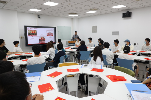 班会上,辅导员陈文洋以“国之大者,民之幸也”为主题展开宣讲,鼓励同学们牢记“国之大者”,自觉担负起中华民族伟大复兴的历史使命。学生代表朗诵《我的祖国》,深情告白伟大祖国。班导师刘胜凯结合实例阐述了中国特色社会主义制度的显著优势。团支书莫禹琪围绕“争做时代新青年,奋斗点亮中国梦”为主题进行宣讲,表达了只争朝夕、青春筑梦的铮铮誓言。