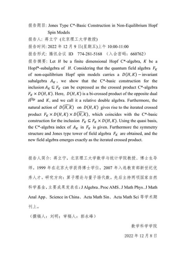 数学科学学院暨应用数学中心学术报告