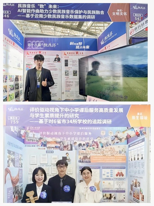 在主体赛终审决赛中,我校参赛项目团队勇于拼搏、表现优异,“民族音乐‘数’未来:AI智能作曲助力少数民族音乐保护与民族融合——基于云南少数民族音乐数据集的调研”项目荣获特等奖,“评价驱动视角下中小学课后服务高质量发展与学生素质提升的研究——基于对6省市34所学校的追踪调研”项目荣获一等奖,“ILight-基于多元全息感知的物联网智慧交通平台”等4个项目荣获三等奖。另外,我校项目团队在红色专项活动中荣获二等奖1项、在“黑科技”专项赛中荣获二等奖1项。我校项目团队在主体赛和专项赛中取得的成绩,均创造了学校参加该赛历史最好成绩。