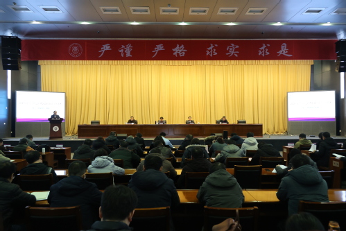 2024年1月11日下午,我校2023届毕业生就业工作总结暨2024届毕业生就业工作推动会在学术中心报告厅举行。校党委书记沈江、党委副书记胡英江、常务副校长姜勇、副校长刘义出席会议。学校就业工作领导小组主要成员单位负责人、各学院党政负责人和相关就业工作负责老师参加会议。会议由胡英江副书记主持。