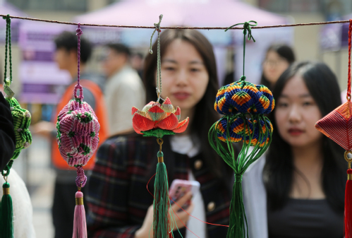 活动现场,纺织科学与工程学院的扎染、蜡染工艺,博雅书院的手鞠球、中华绳结、毛线钩编、非遗剪纸等“工作坊”项目一一亮相。前不久在香港精彩绽放的学校中华优秀传统文化与技艺国际传承创新基地艺术作品介绍也陈列其中,让广大师生沉浸式体验中华优秀传统文化的博大精深,近距离领略中华优秀传统文化之美。