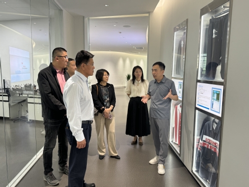 4月25日,在石狮禾宝纺织有限公司人力资源经理邱胜勇的陪同下,胡英江副书记一行走访调研了该公司的生产设备、检测中心和营销中心,参观了公司的成果展。双方就进一步开展校企合作、校园招聘进行了深入交流。