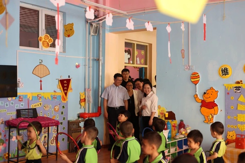 在当地教育局相关负责同志和支教团带队管理教师的陪同下,胡英江副书记实地考察了于田县支教学校、支教团驻地食堂、宿舍和活动室,详细了解了支教团成员的工作环境、工作内容以及生活情况,从衣食住行各方面关注、关心和关爱支教团师生,并与支教团师生进行亲切交谈。