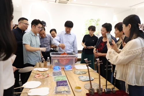 观摩调研中,学校相关职能部门负责同志介绍了学校在科研创新、成果转化、教学实训等方面开展的工作和取得的成效。中华优秀传统文化与技艺国际传承创新基地负责人、陶胎漆器实验室负责人、博雅书院负责人先后介绍了我校在中华优秀传统文化创造性转化创新性发展等方面所开展的天工实践。在中国古典民乐器文化与技艺体验厅内,委员们还现场体验了“漂流漆”漆艺工艺制作。