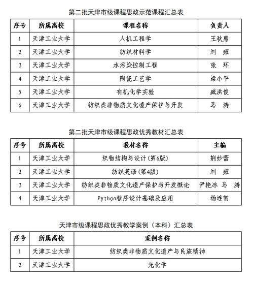 近日,市教委公布了第二批天津市级课程思政示范课程、课程思政优秀教材和首批天津市级课程思政优秀案例评选结果,我校共有6门课程、4本教材、2个案例获批。每个项目的获批数量均位列市属高校第一。