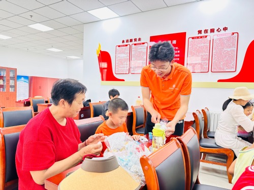 寓教于乐促进社区文化建设。炎炎夏日,“儿童与海洋:一场关于保护的对话”系列实践活动吸引了不少锦泽苑社区的学生和家长。控制科学与工程学院志愿者们以海洋传说为引,为孩子们讲解海水奥秘与生物多样性、讲述海洋污染对海洋生物的严重影响,小朋友们在志愿者的帮助下,将收集到的贝壳做成小夜灯。灯火虽微,却照亮了孩子们心中保护海洋的美好信念。