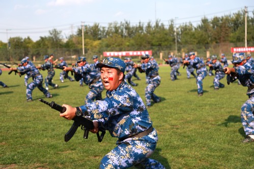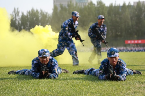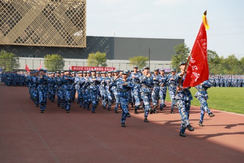 汇报大会在庄严的升国旗仪式中拉开序幕。沈江书记下达分列式开始命令,伴随着激昂的《中国人民解放军进行曲》,各营连方队高喊着响亮的口号,迈着坚定有力、矫健整齐的步伐,英姿飒爽地依次走过主席台,充分展现出天工学子的活力与风采。在军事技能汇报展示中,军体拳表演精神抖擞,招式敏捷;刺杀操表演气势如虹,豪气万丈;匕首术展示刚柔并济,干脆利落;战术演练分队配合默契,身手矫健。一系列的汇报展示交织出一场沙场秋点兵的铿锵画卷,赢得全场阵阵喝彩和掌声。