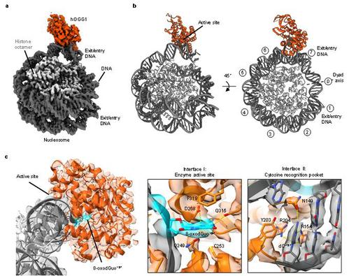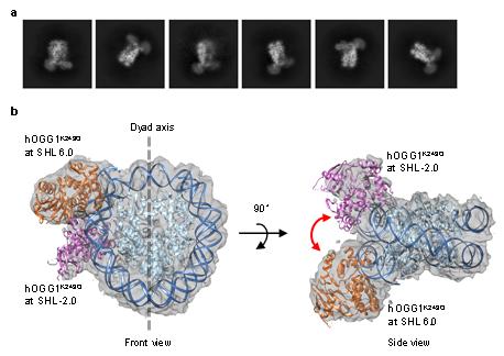 图1. hOGG1K249Q/NCP-8-oxodGuo-137复合物的冷冻电镜结构