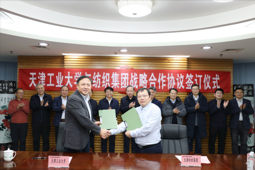 2024年12月20日下午,我校与天津纺织集团(控股)有限公司在空港经济区天纺大厦签署战略合作框架协议。校长姜勇,天津纺织集团党委书记、董事长葛传兵出席并致辞。校党委副书记张玉波,天津纺织集团党委副书记、总经理张宇峰,副总经理何东瀛,双方相关部门负责同志以及天投公司、天纺标公司负责人参加签约仪式。