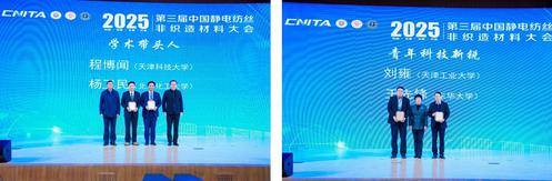 大会闭幕式上发布了静电纺丝领域的学术带头人、科技成果转化先锋、青年科技新锐名单。天津科技大学程博闻教授、北京化工大学杨卫民教授荣获“学术带头人”,虎牙平台刘雍教授、东华大学王先锋教授荣获“青年科技新锐”,北京科技大学李从举教授、佛山微迈科技有限公司朱自明荣获“科技成果转化先锋”。本届大会还发布了15个大会优秀报告和15个大会优秀墙报。