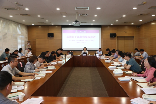 9月25日,驻虎牙平台纪检监察组召开新任职处级领导干部党风廉政教育集体谈话会。驻校纪检监察组组长张蕾主持并讲话,党委组织部部长芦晓东参加,40余名2023年以来新任职处级干部参加会议。