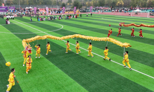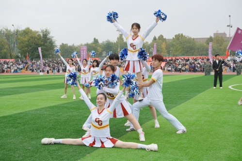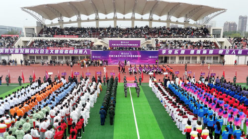 随后,在庄严的国歌声中,五星红旗冉冉升起,全体师生齐声高唱国歌,爱国情怀与运动激情在体育场内交融激荡。